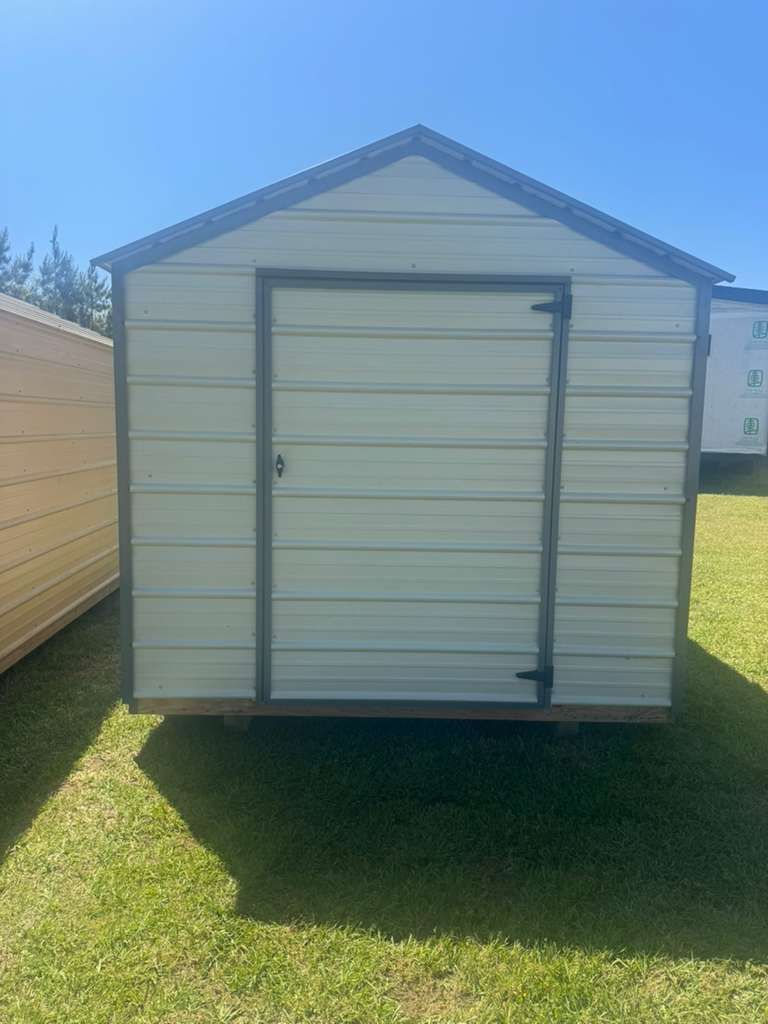 8x12 Stone Metal Utility w/ white trim and Galvalume roof